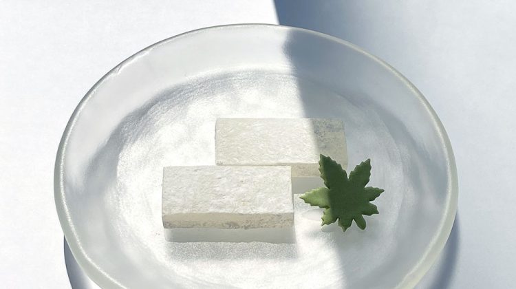 神事「夏越しの祓」にちなむ、外はしゃりしゃり、中はつるり…独特の食感がみずみずしいお干菓子。京の夏の雅をお届けいたします。