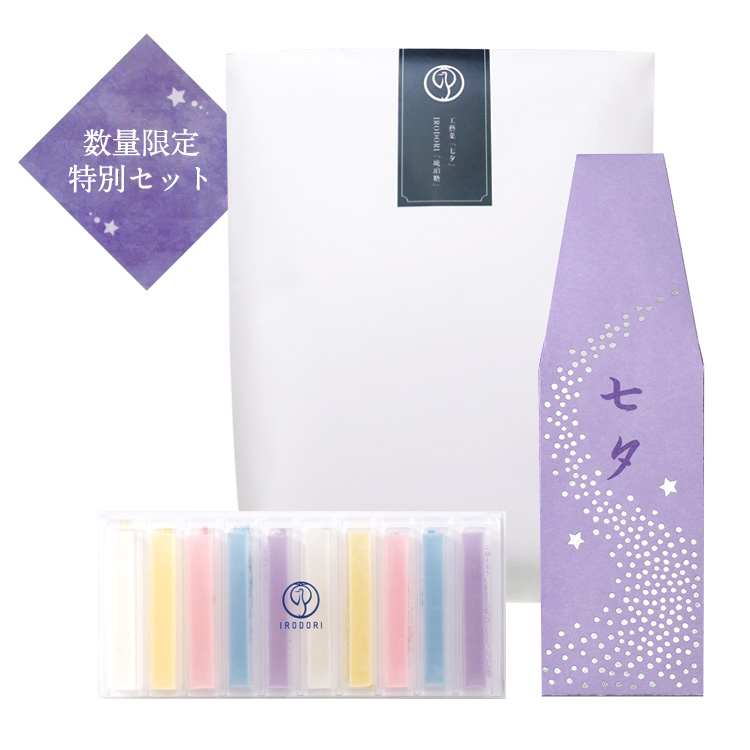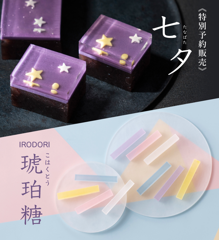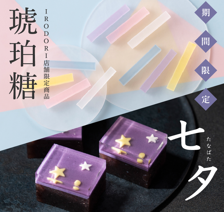 IRODORIブランド取扱店限定の『琥珀糖』と、星かがやく銘菓『七夕』との特別なセットを、