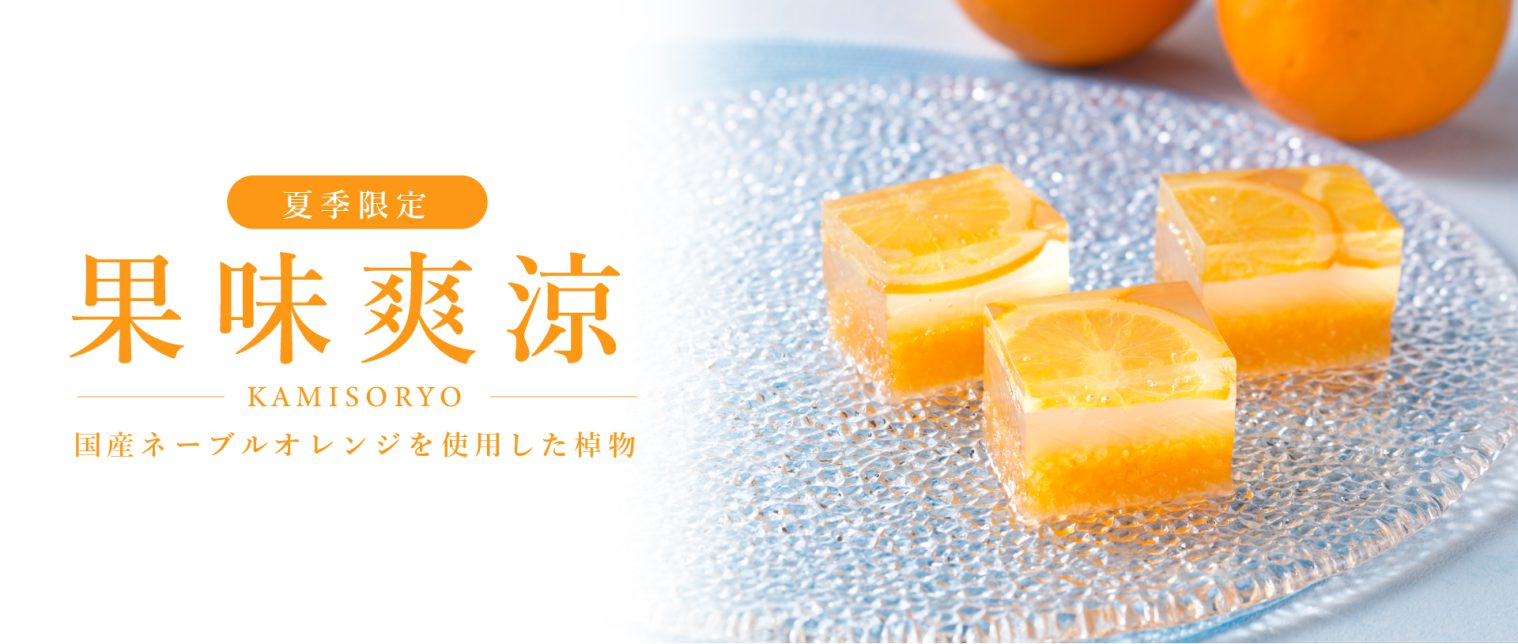 2022年7月4日(月)夏季限定 国産ネーブルの和菓子「果味爽涼」国産ネーブルオレンジの果実が目にも爽やか。道明寺と葛入り琥珀羹の涼やかな食感。今だけ期間限定販売です。果味爽涼 1棹 1,620円(税込)販売期間:7月上旬~下旬公式オンラインショップで詳しく見る。>>