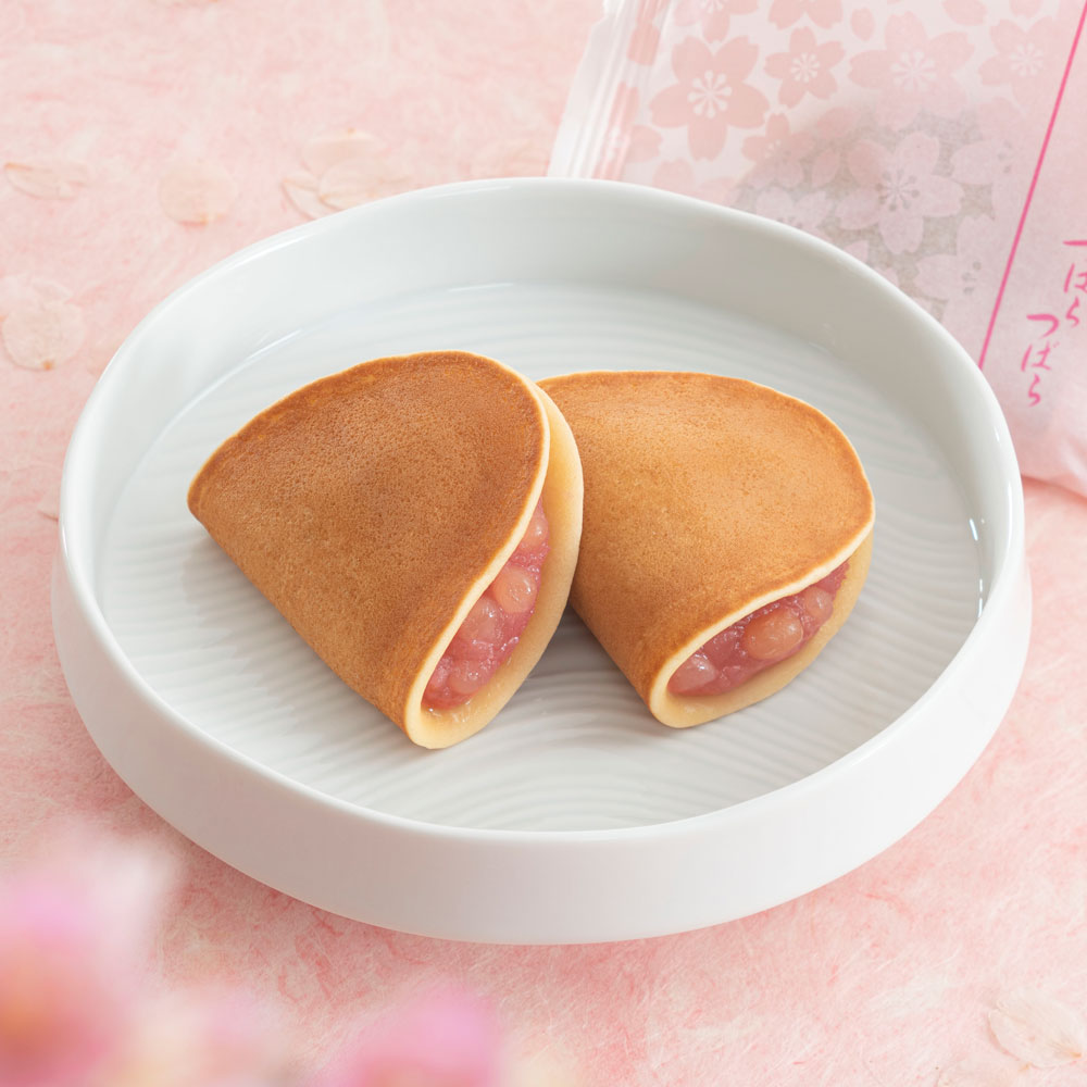 希少な「備中白小豆」を使用した粒あんを春らしい桜色に染めて、もっちり・しっとり美味しい焼皮にはさみました。