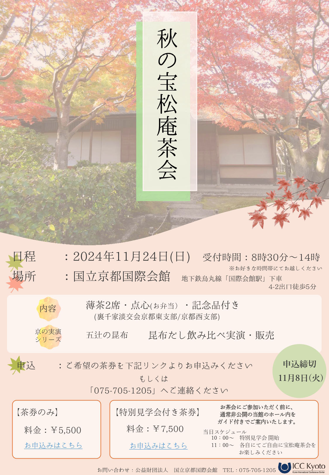 【予 約】お電話:075-705-1205(国立京都国際会館)