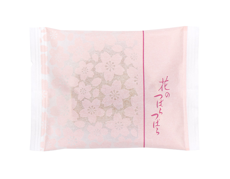 桜色に染めた備中白小豆製の粒あんを、桜の焼印をあしらった焼皮につつみました春だけの味わい「花のつばらつばら」。