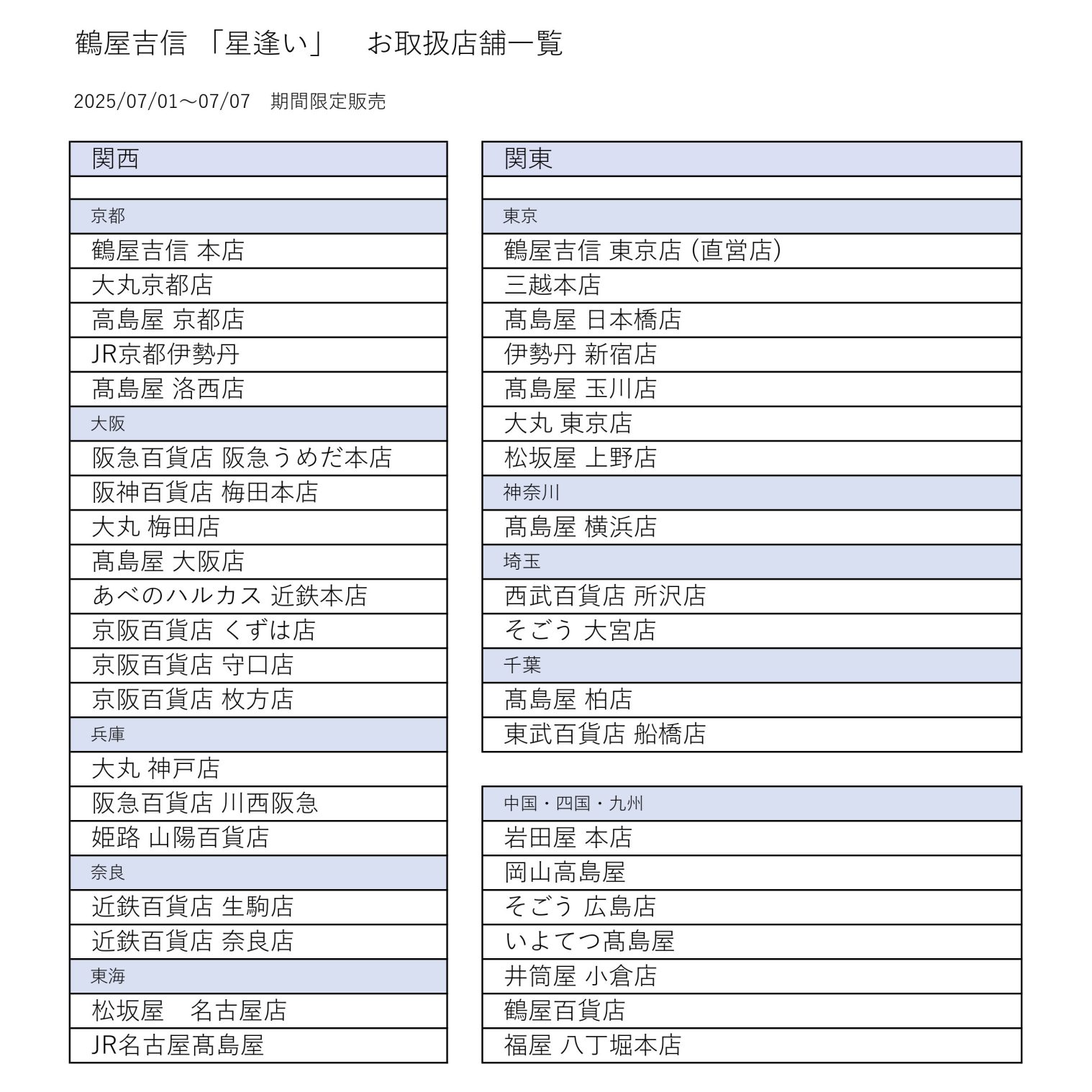 鶴屋吉信では、2025年7月1日(火)〜7日(月)の1週間限定で、七夕の意匠羊羹「星逢い(ほしあい)」を新発売いたします。