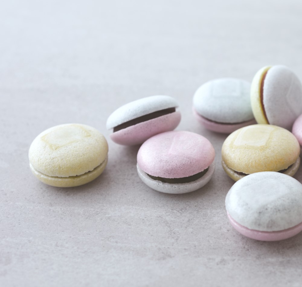 洋菓子のマカロンをモデルとした可愛らしいひと口サイズの最中。