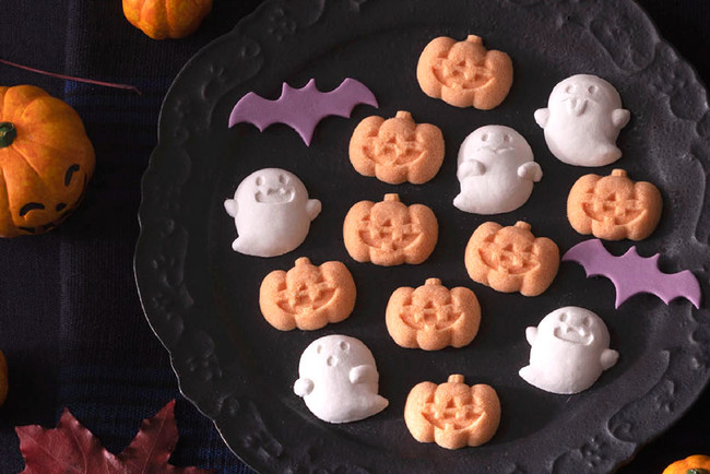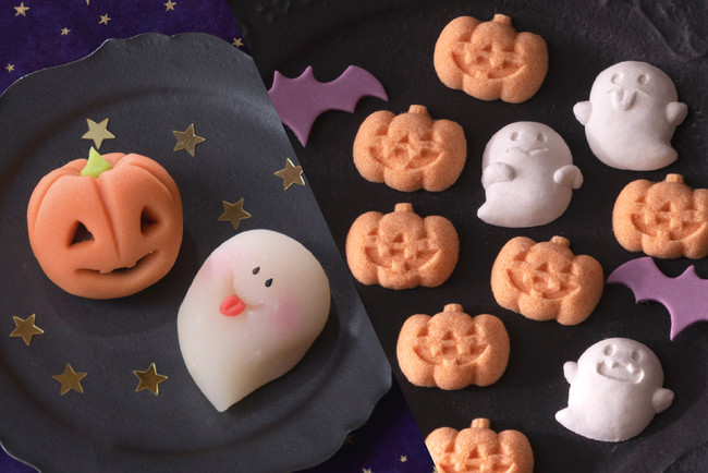 にやりと笑うパンプキン(かぼちゃ)と、ピンクのほっぺが愛らしいゴースト(おばけ)が期間限定の生菓子になりました。ちょっぴり風変わりな生菓子は、ハロウィンのお茶時間の人気者になること間違いなし。