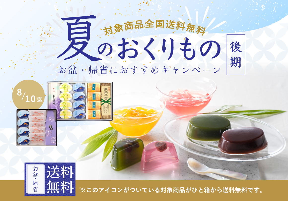 終了まであと4日!WEB限定・送料無料「夏のおくりもの」キャンペーン開催中。京の老舗がおくる涼菓、五山送り火にちなむ京都限定の和菓子をお盆、帰省に。