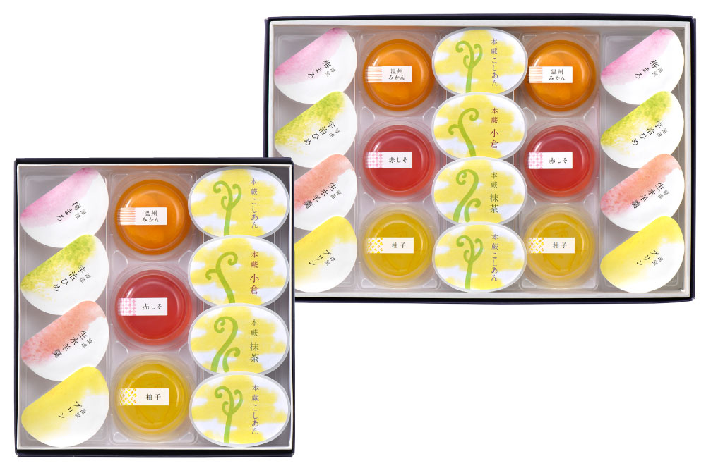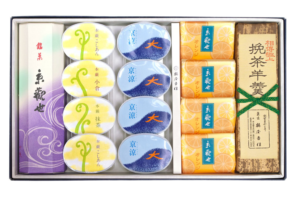対象商品には、鶴屋吉信謹製・夏におすすめの爽やかな和菓子をセレクトしてお詰め合わせいたしました。