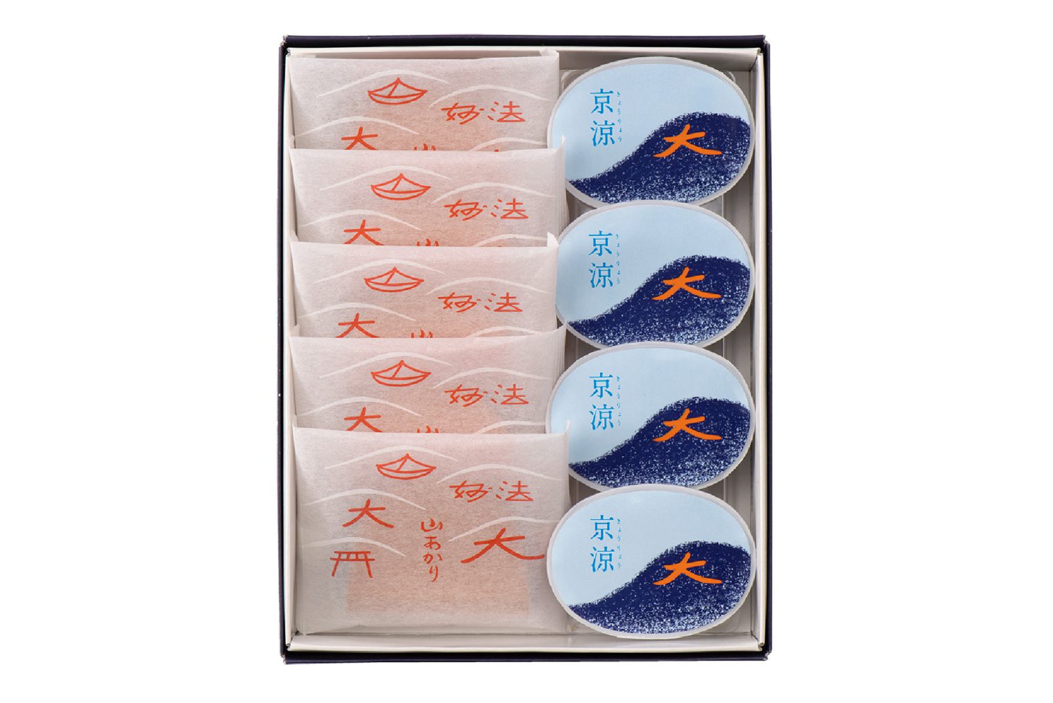 「山あかり」と「京涼」のお詰合せも各種お取扱しております。送り火のお菓子をそろえて、お盆のお供えにも。