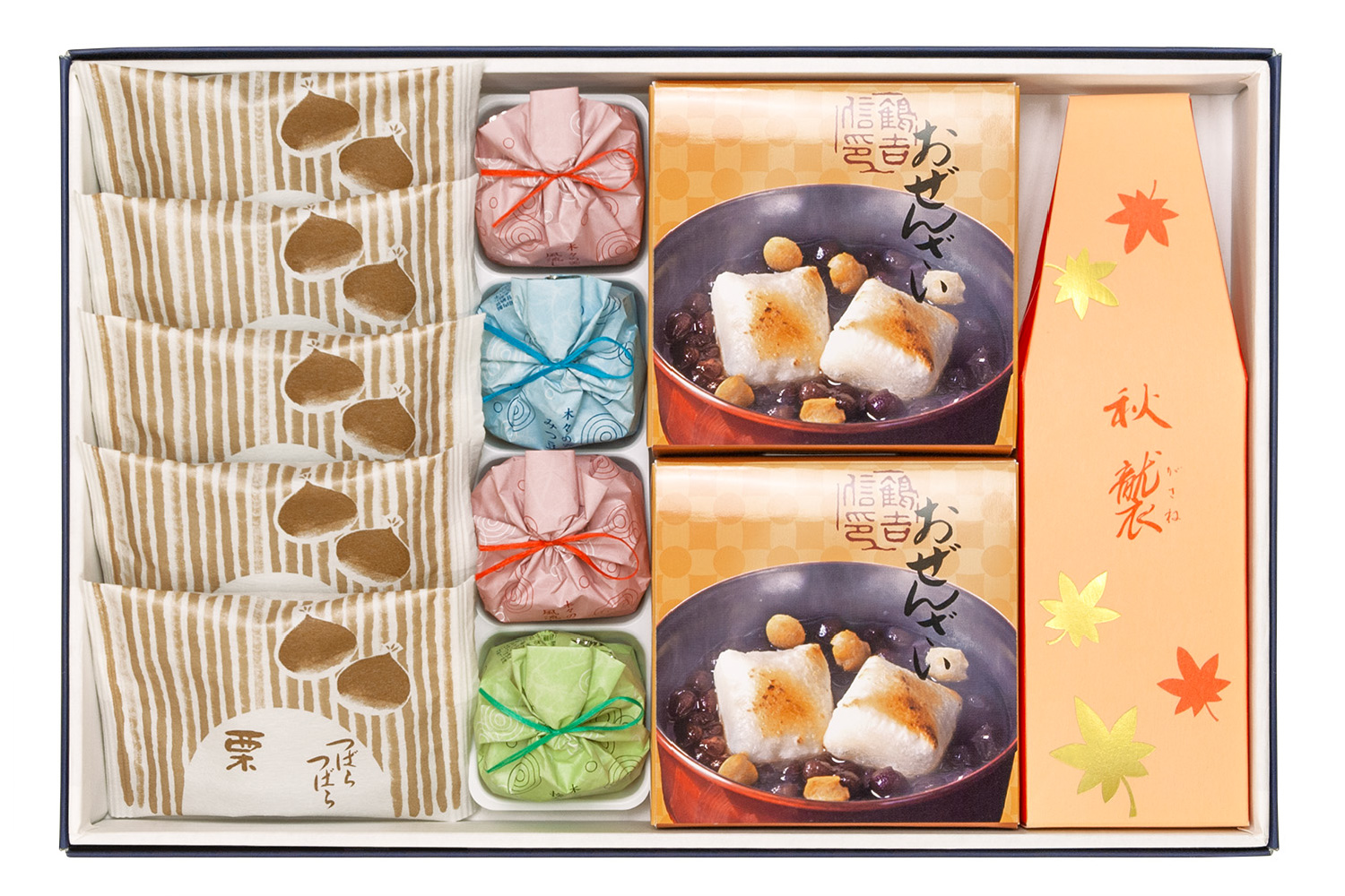 対象のお詰合せには、鶴屋𠮷信謹製・秋冬をほっこり楽しめる和菓子をセレクトしました。