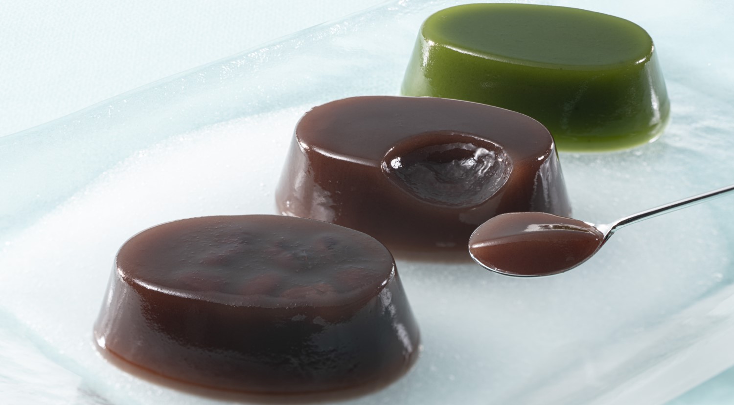 大変貴重な本蕨粉を活かしながら職人が丁寧に炊きあげた、水羊羹ともゼリーとも異なる、真似のできない《ぷるぷる》の食感が特徴のこだわりの逸品。なめらかな口当たりの『こしあん』に、小倉の粒々がアクセントの『小倉』、爽やかで香り高い甘味『抹茶』の3種類の美味しさをご用意しております。