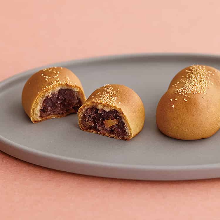 しっとり焼いた焼皮のきざみ栗入りこしあん。