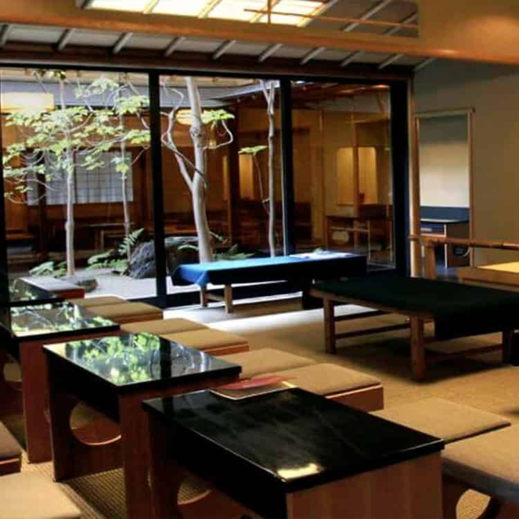 テーブル席タイプの茶寮を備えている店舗です。
