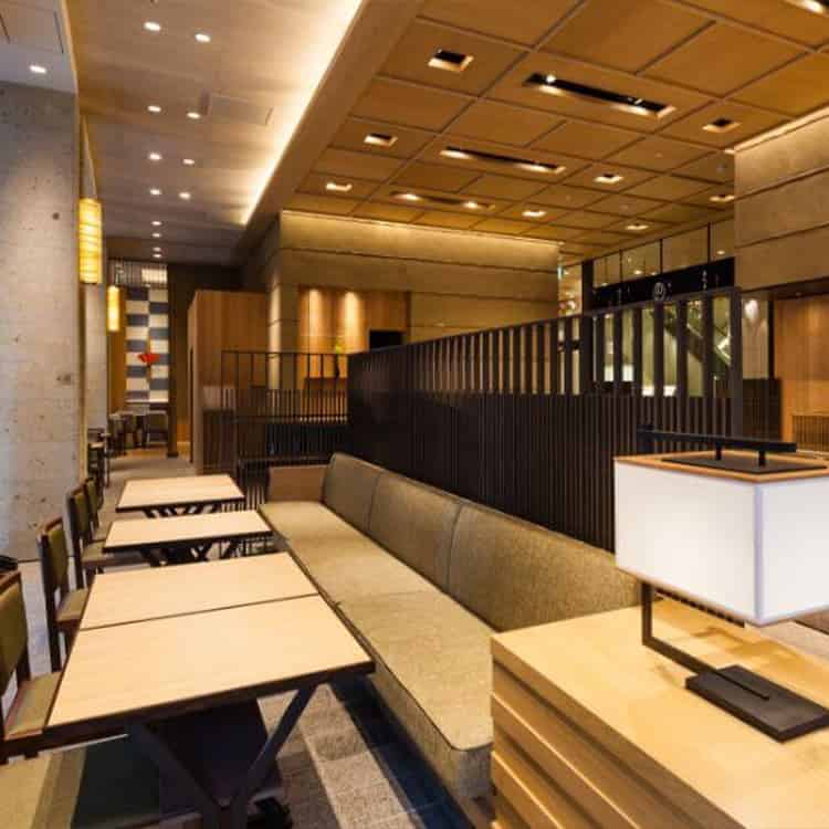 テーブル席タイプの茶寮を備えている店舗です。