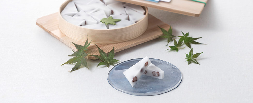 宮中の貴族たちの間には夏越の祓の際に氷を食べて暑気を払う習慣がありました。しかし当時の氷は大変貴重で、庶民には手が届きません。そこで氷に似せた和菓子として誕生したのが水無月であり、御所氷室です。